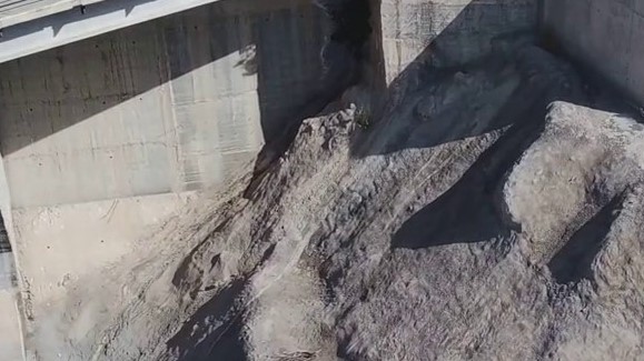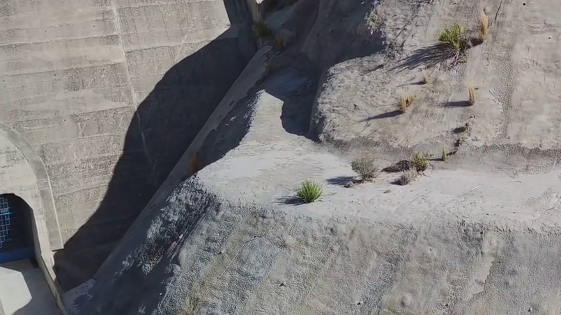 Vista aguas abajo del estribo margen derecha y del paramento del aliviadero
